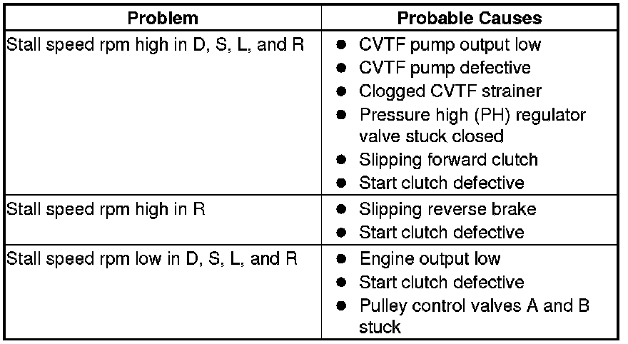11. If the stall speeds are out of the service limit, the problems and probable causes are listed in the table.