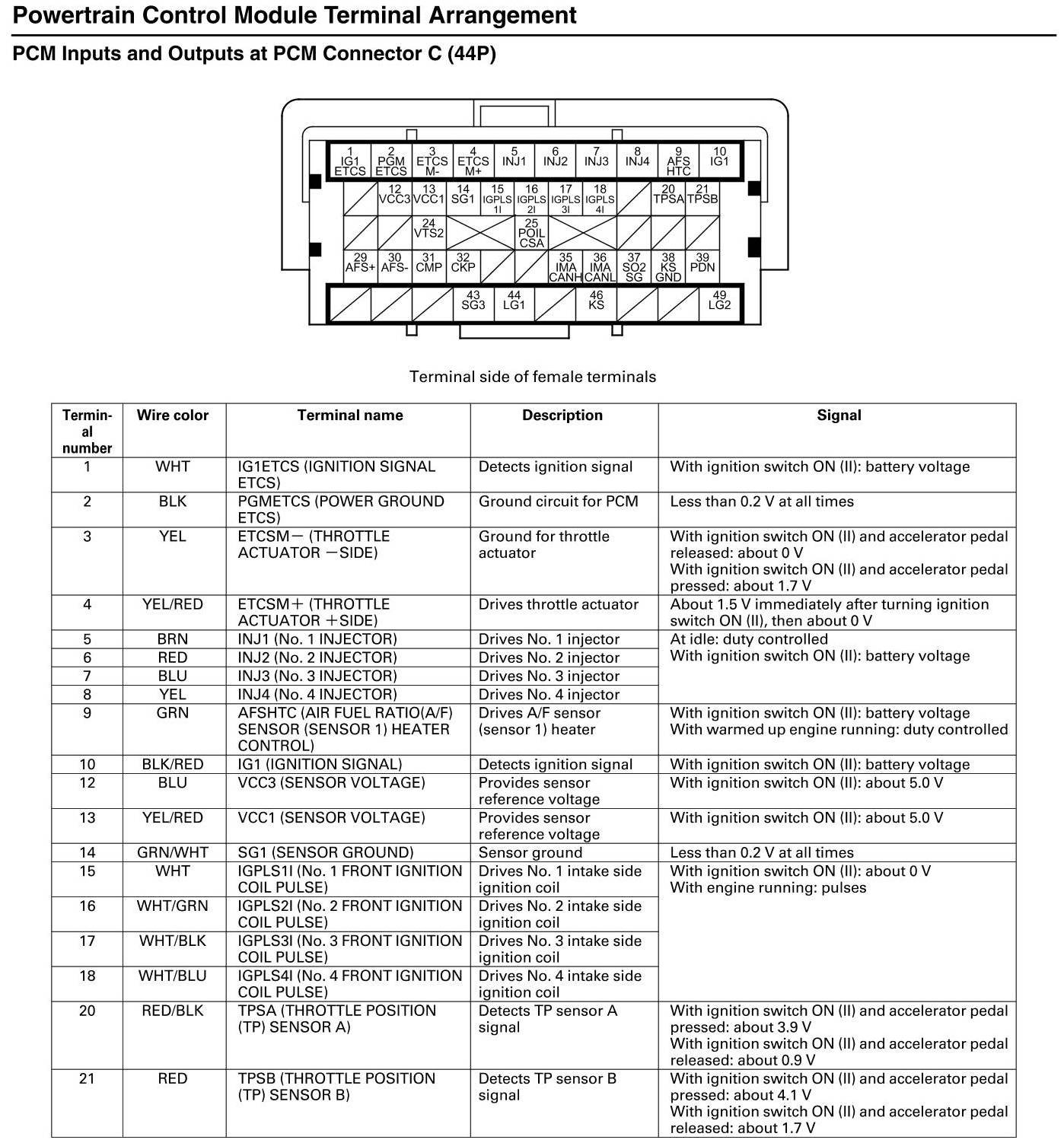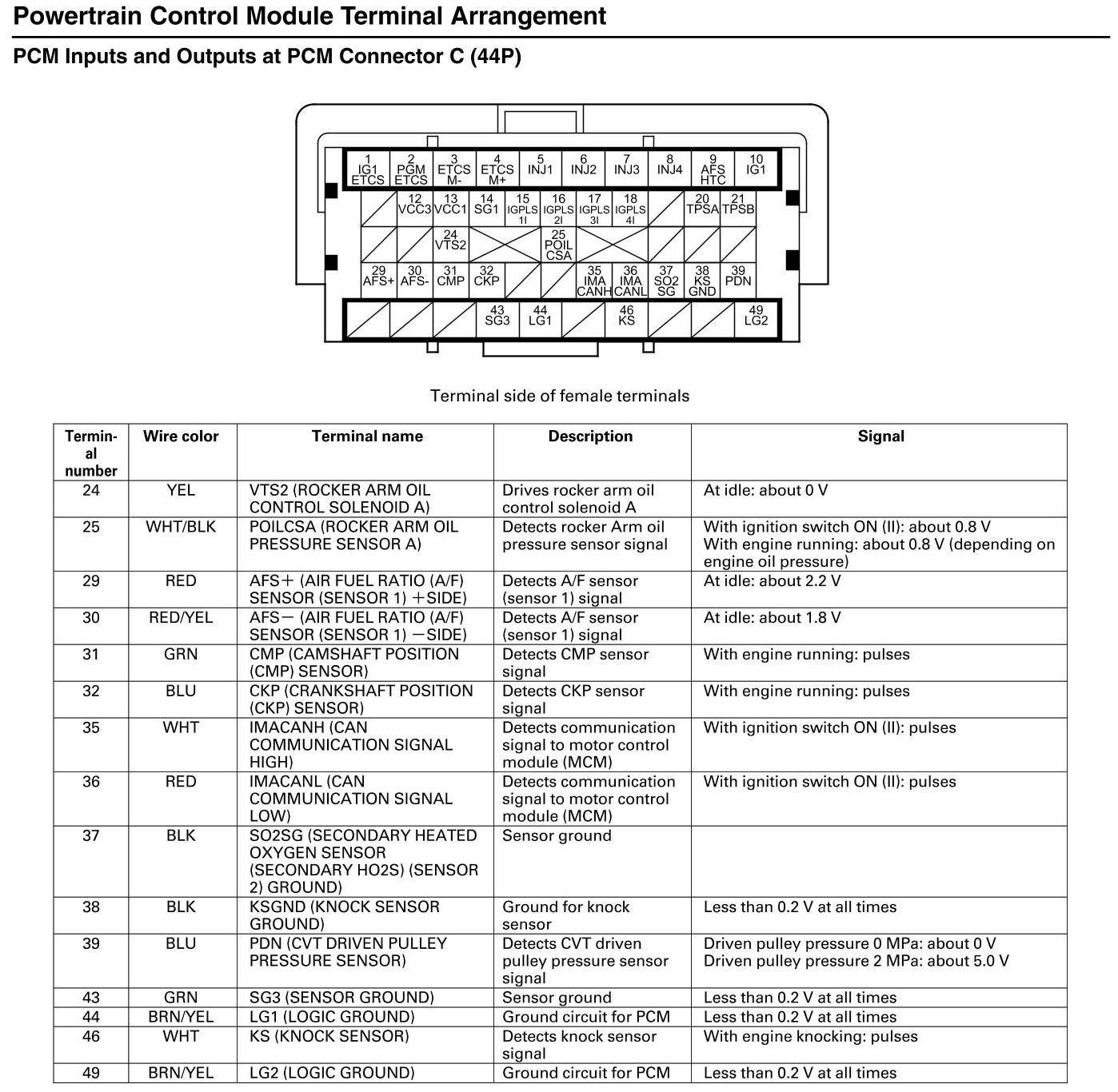 PCM Inputs And Outputs At Connector C