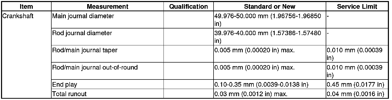 Crankshaft Specification(s)