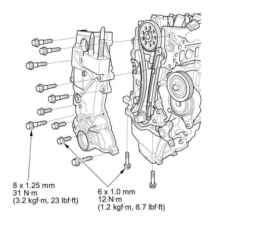 Tighten the chain case mounting bolts. Wipe off the excess liquid gasket from the