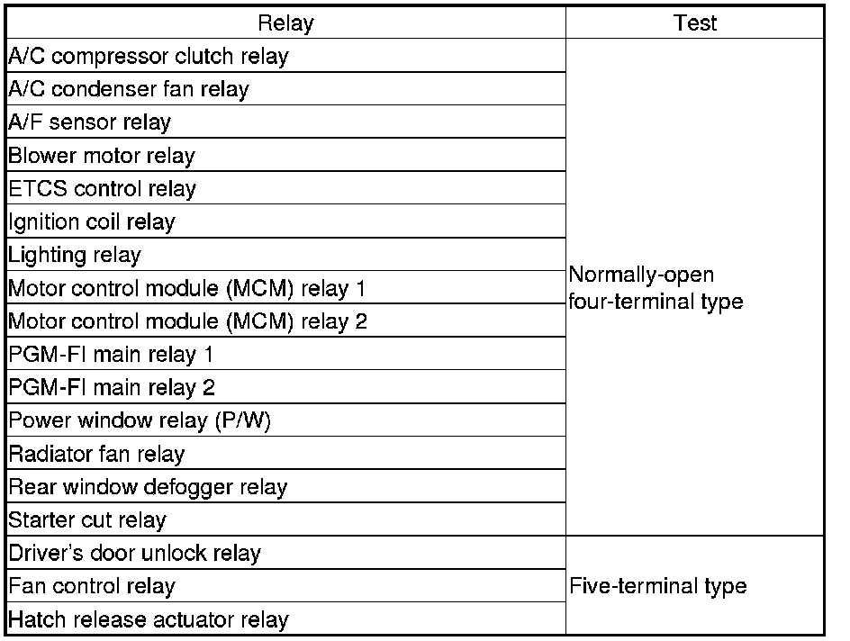 Use this chart to identify the type of relay, then do the test listed for it.