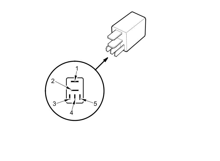 - There should be continuity between terminals No. 1 and No. 2 when battery power is connected to terminal No. 5, and body ground is connected to terminal No. 3.