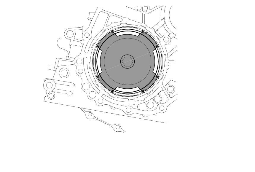 13. Remove the three bolts securing the CVTF pump drive sprocket (H), then remove the CVTF pump drive chain (I) and the CVTF pump drive sprocket.