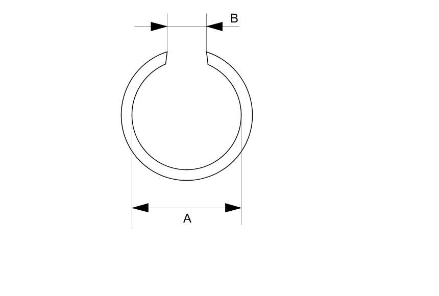 13. After installing the snap ring, check that the snap ring is seated in the snap ring groove of the intermediate housing, and that the snap ring inside diameter (A) is 143.5 mm (5.65 in) or more, and also check that the snap ring end gap (B) is 8.7 mm (0.34 in) or more.
