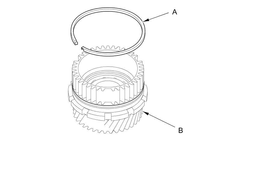 34. Install the sealing ring (A) on a new secondary drive/park gear (B).