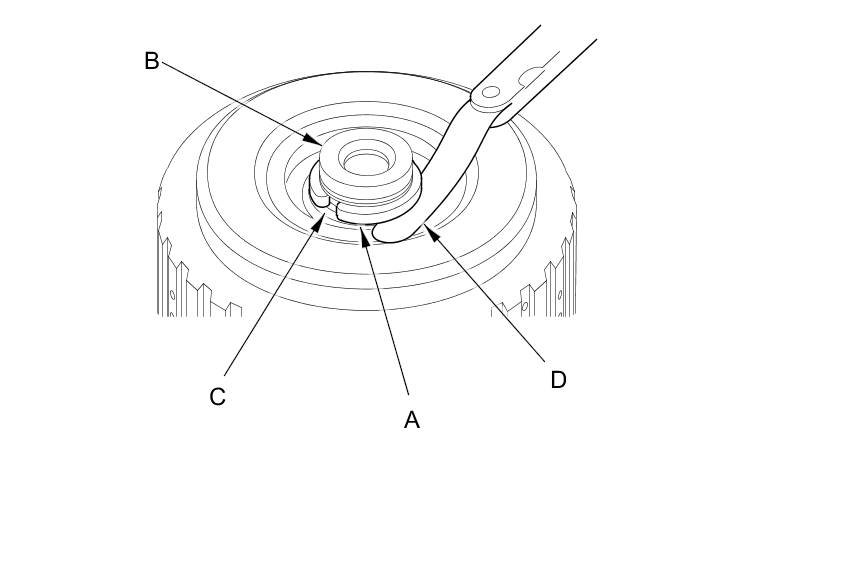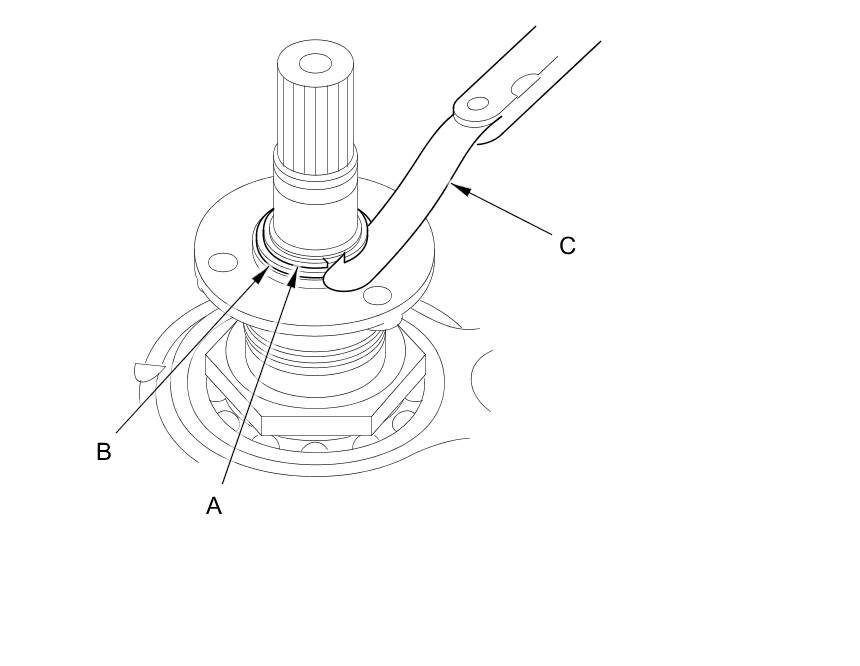 24. After installing the snap ring, check that the snap ring is seated in the snap ring groove of the drive pulley shaft, and that the snap ring outside diameter (A) is 41.4 mm (1.63 in) or less.