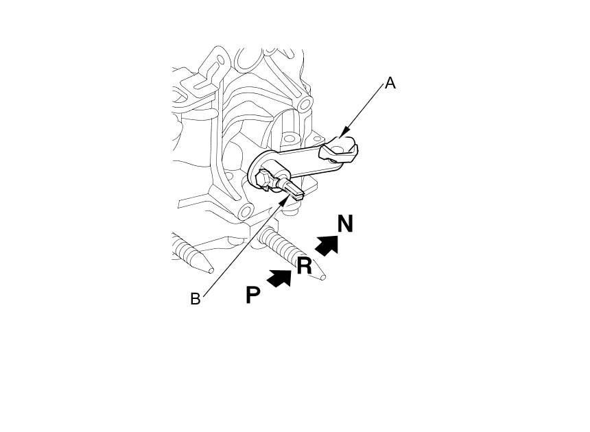 NOTE: Be sure to use a 2.0 mm (0.08 in) feeler gauge blade or equivalent to hold the transmission range switch in the N position.