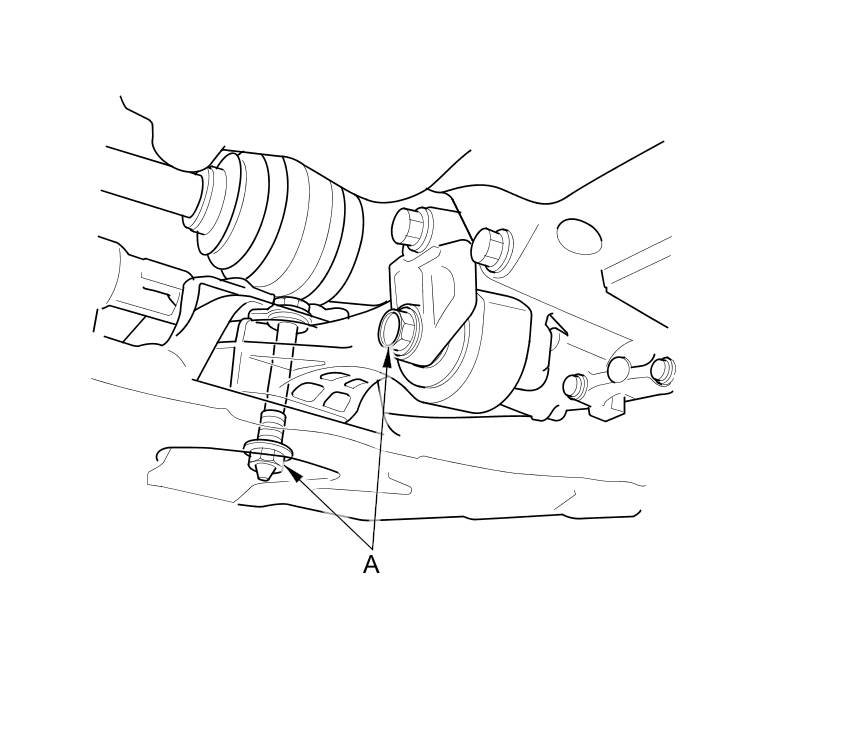 18. Loosen the torque rod mounting bolt and nut (A).
