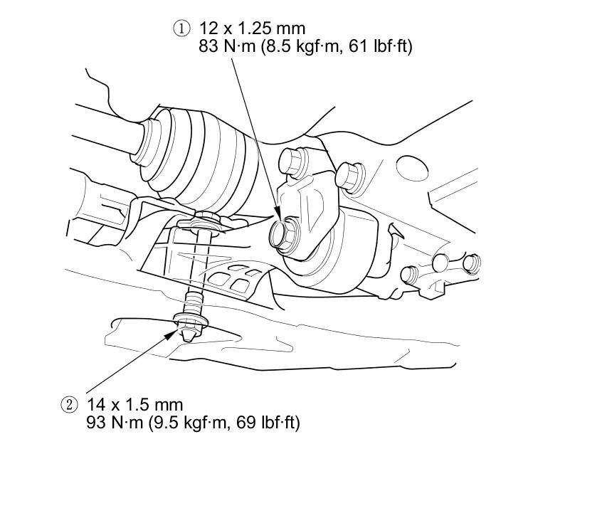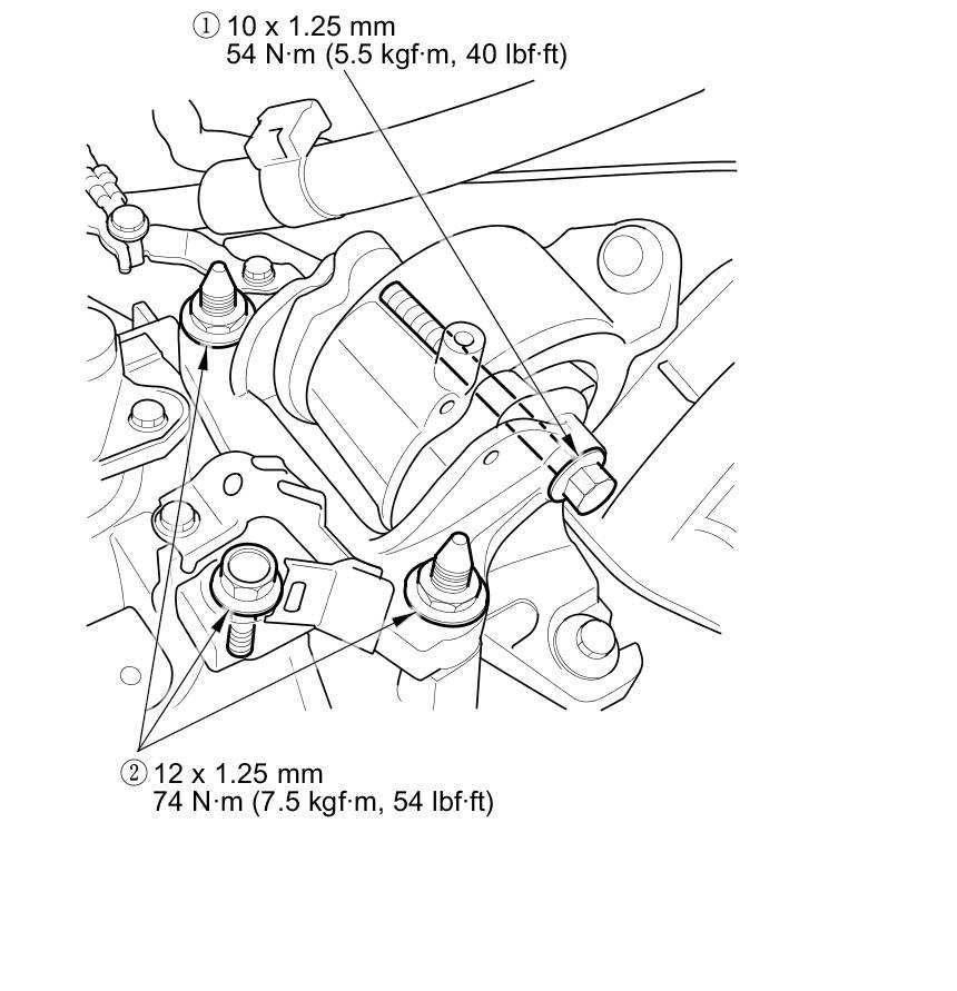 22. Tighten the torque rod mounting bolt and nut in the numbered sequence shown.