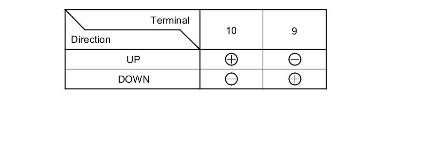 2. Test the motor in each direction by connecting battery power and ground to the power window master switch 22P connector according to the table.