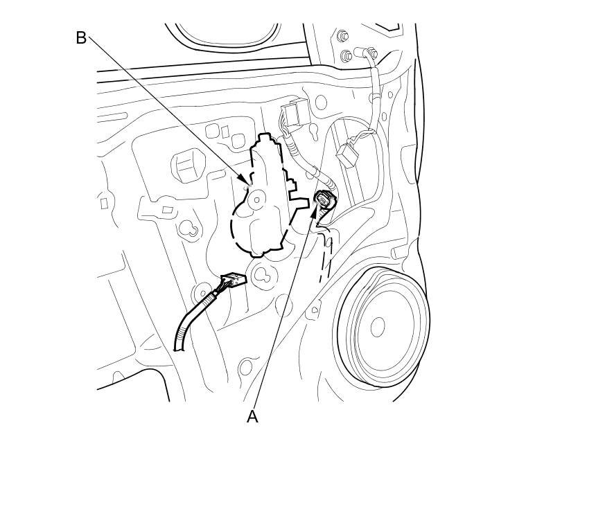 4. Disconnect the 6P connector (A) from the driver's power window motor (B).