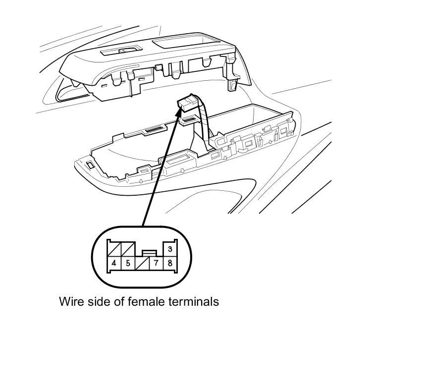 1. Remove the front passenger's power window switch Passenger's Power Window Switch Replacement.