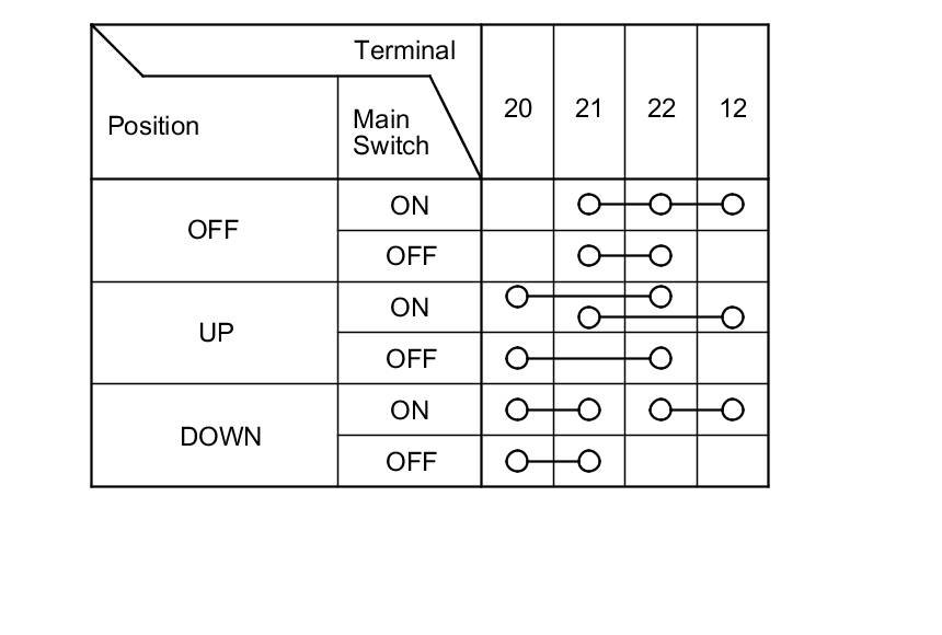 3. Check for continuity between the terminals in each position according to the tables.
