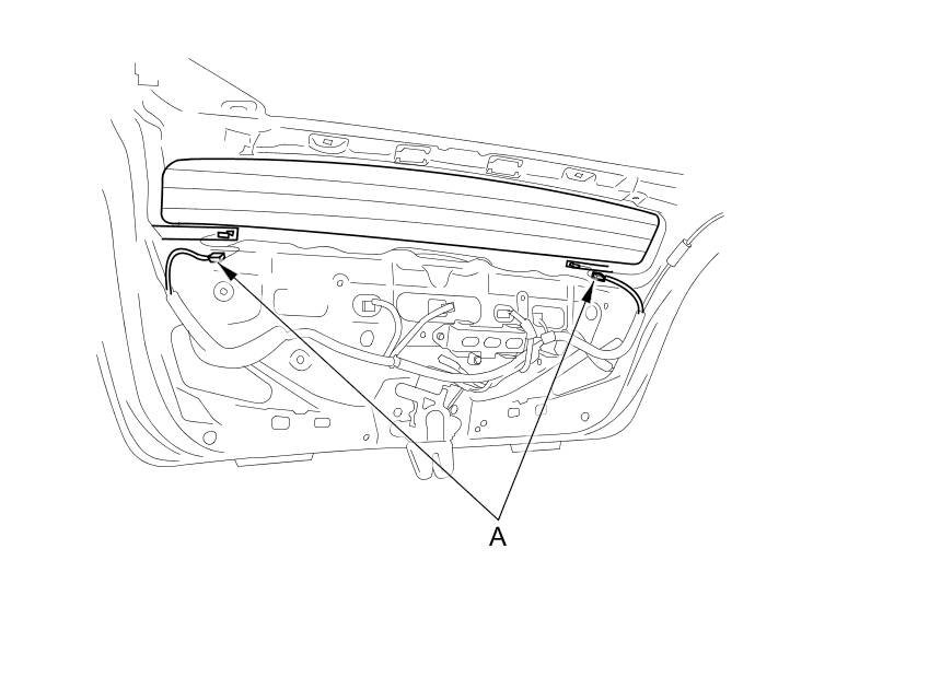 9. Detach the clips that hold the lower rear window (A), then carefully remove the lower rear window.
