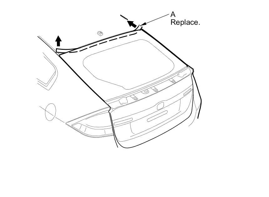 2. Remove the upper seal (A) from the edge of the upper rear window. If necessary, cut the upper seal with a utility knife.