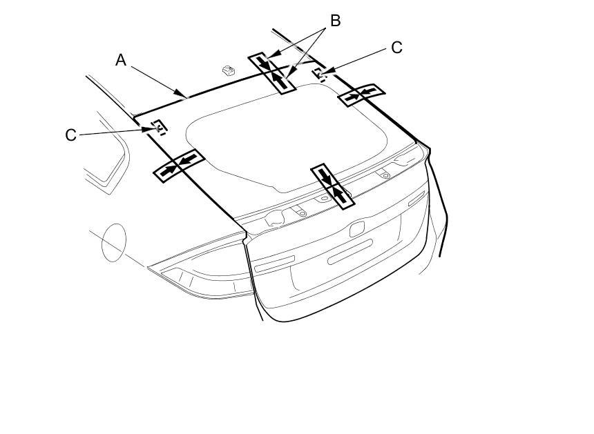 - Be sure the upper seal with the alignment marks (C) on the upper edge of the upper rear window.