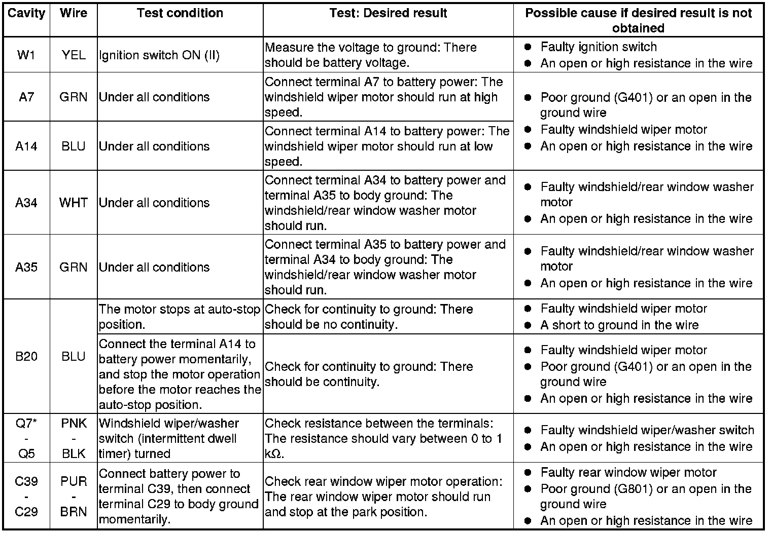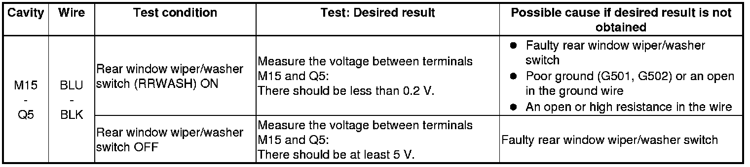 - If the rear window wiper malfunctions, and no DTCs are detected, check the rear window wiper motor and for an open in the ground circuit of the rear window wiper.