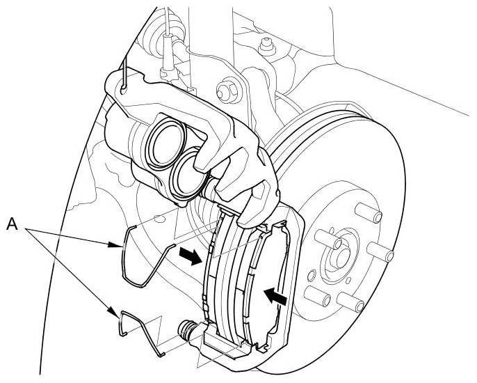 NOTE: Insert the pad return spring ends into the pad installation holes securely.