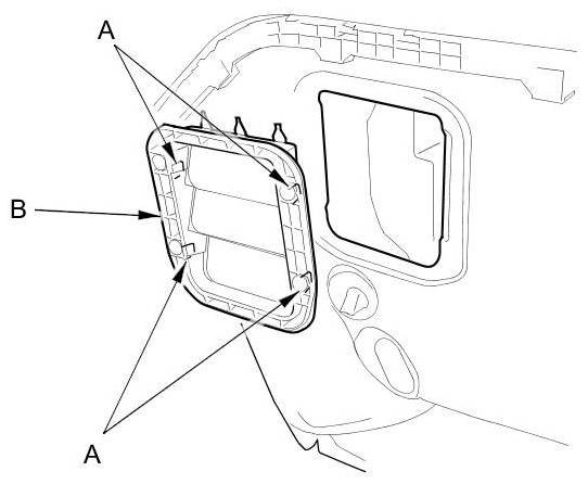 2. Release the hooks (A), then remove the rear air outlet (B).