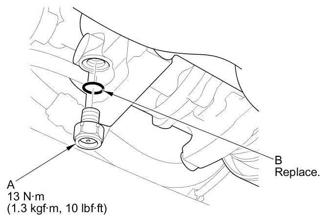 4. Replace the O-ring with a new one at the relief valve, and apply a thin coat of refrigerant oil before installing it.