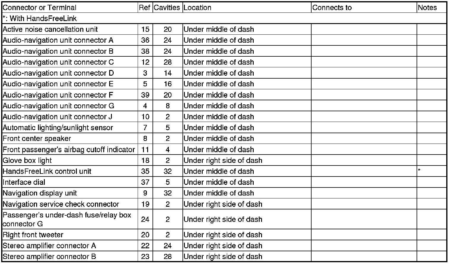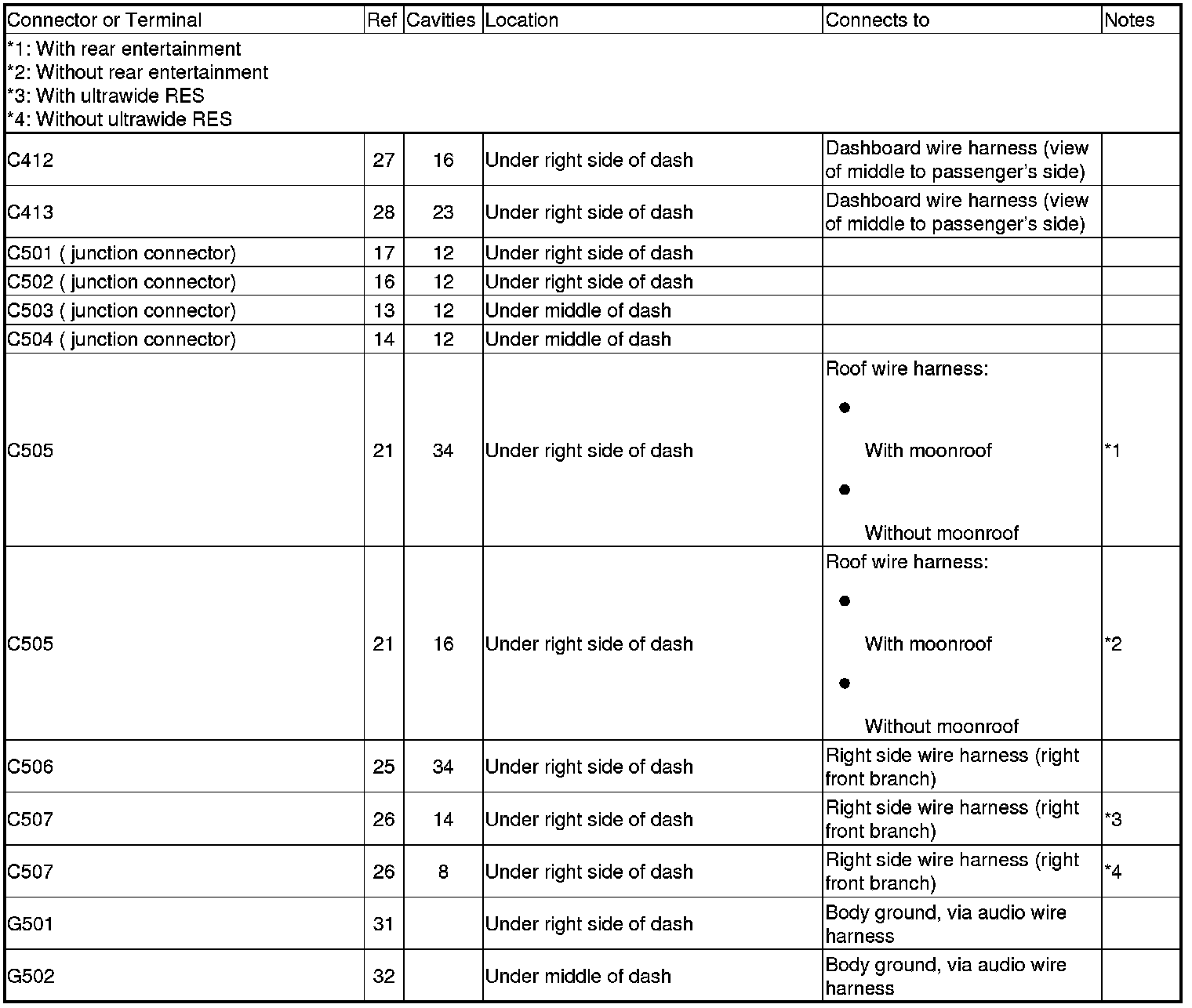 Connector and Harness Locations