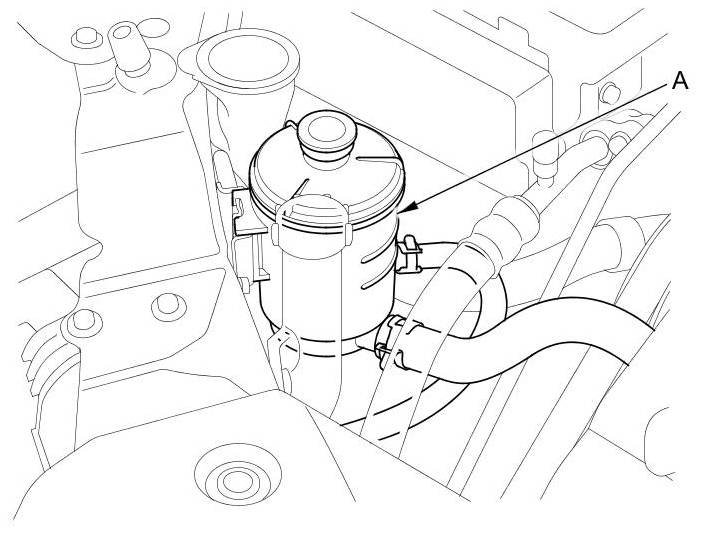 1. Check the reservoir (A) at regular intervals, and add the recommended fluid as necessary. Always use Honda Power Steering Fluid. Using any other type of power steering fluid or automatic transmission fluid can cause increased wear, fluid leaks, and poor steering in cold weather.