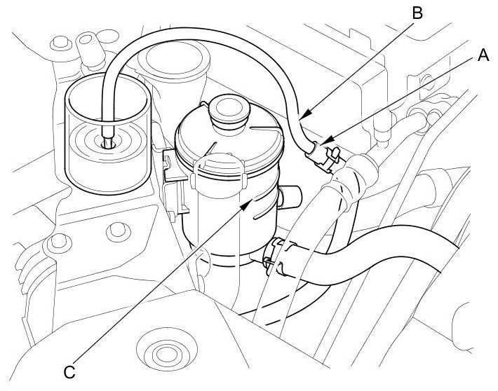 NOTE: Stop the engine immediately once the fluid stops running out of the hose to prevent pump damage.