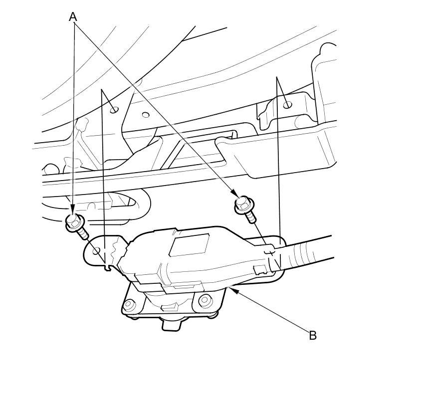 1. Remove the two bolts (A), and separate the trailer lighting connector (B) from the trailer hitch.