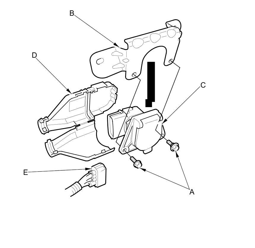 2. Remove the two bolts (A) and the bracket (B) from the trailer lighting connector (C).