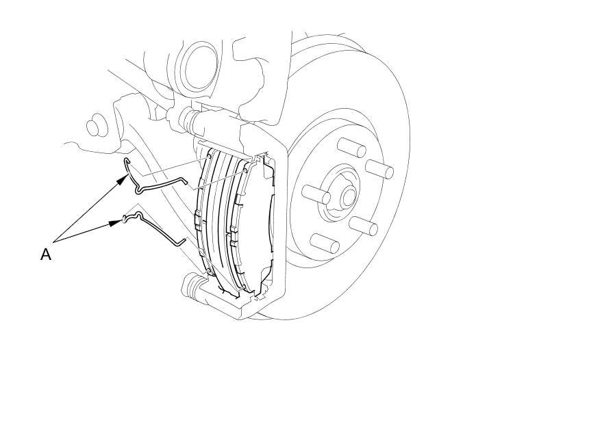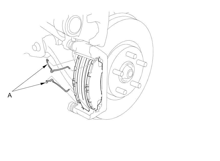 5. Remove the pad springs (A) while holding the brake pads.