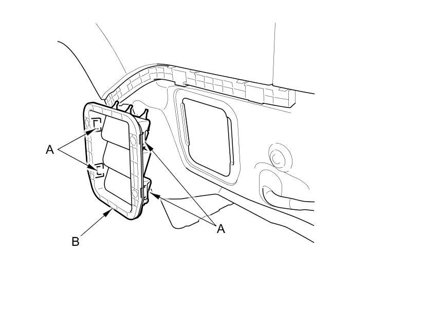 2. Detach the hooks (A), then remove the rear air outlet (B).