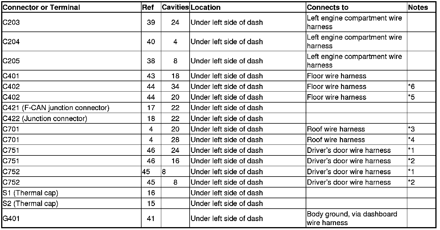 Connector and Harness Locations