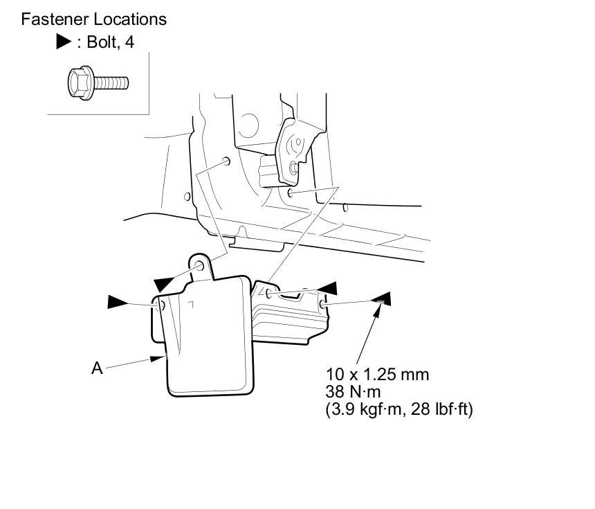 2. Remove the bolts, then remove the left front splash guard reinforcement (A).