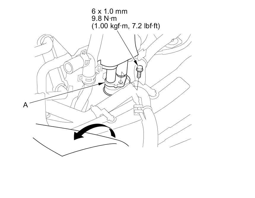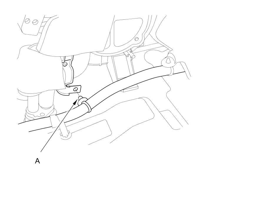 7. Turn over the carpet. Remove the bolt, then disconnect the rear suction/receiver lines (A).