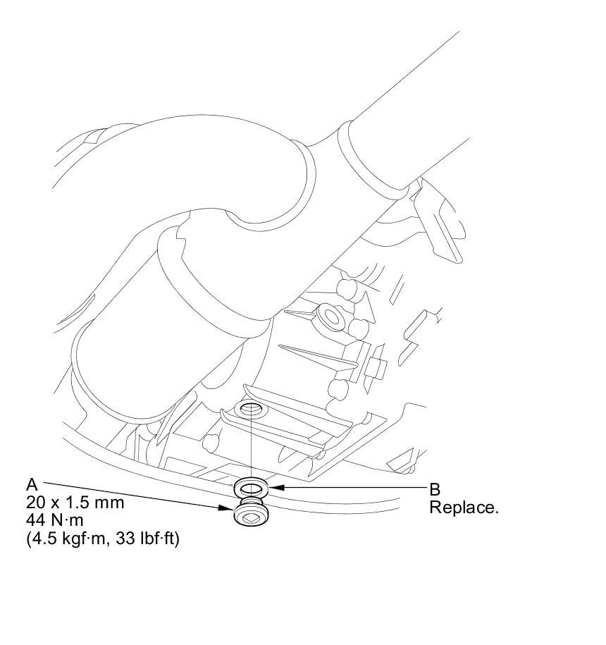 4. Remove the drain plug (A), and drain the transfer fluid (hypoid gear oil).
