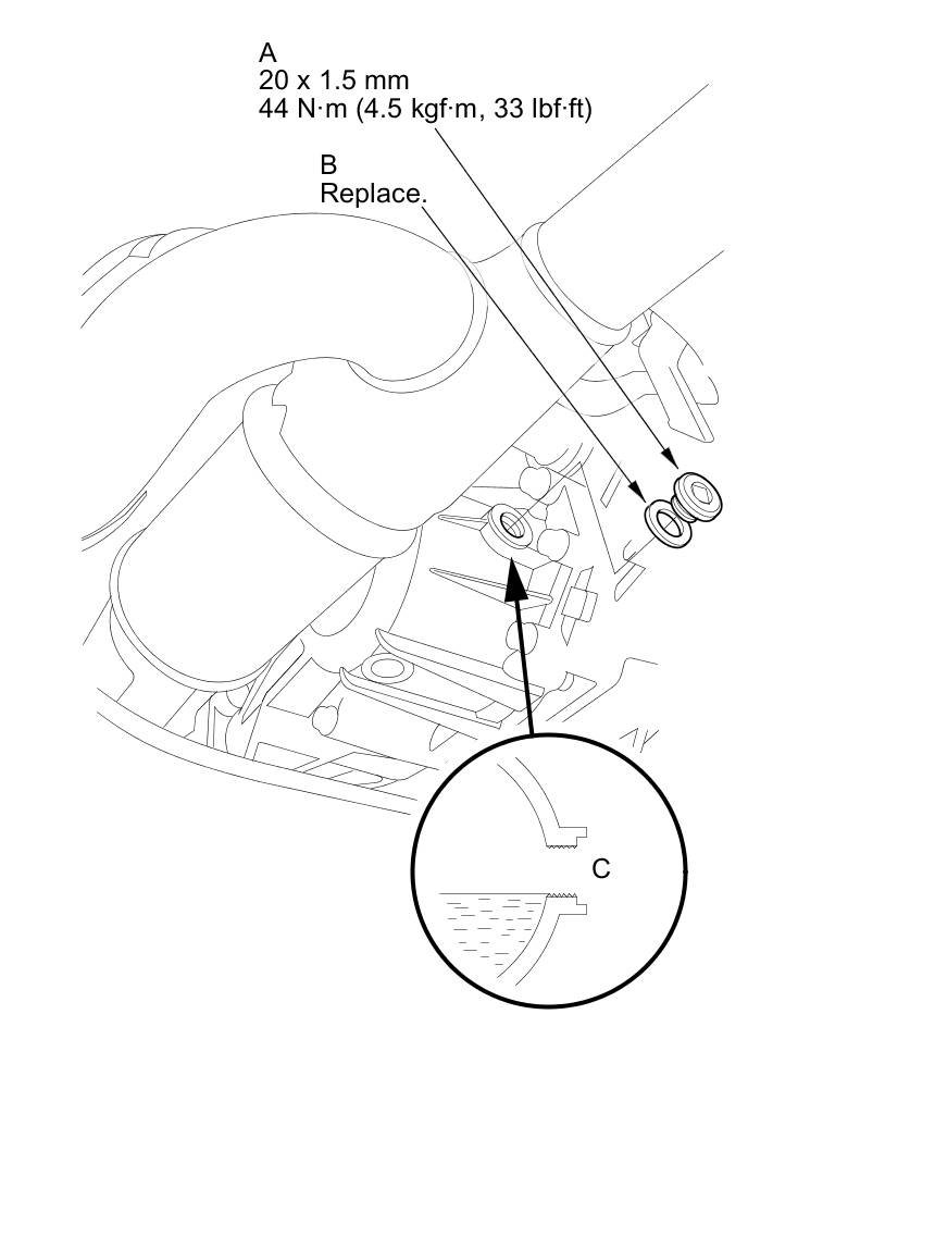 7. Refill the transfer assembly with the recommended fluid (hypoid gear oil) through the filler hole (C) until the fluid flows out. Use an SAE 90 viscosity hypoid gear oil, API classified GL4 or GL5 only.