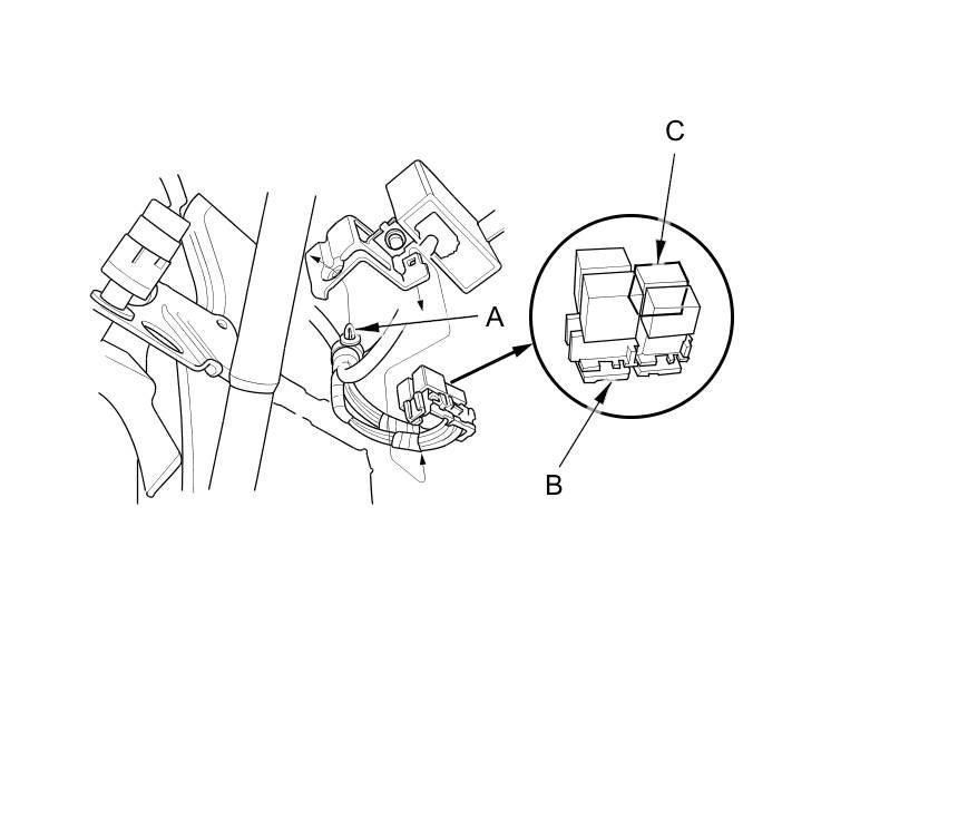 Remove the VTM-4 relay (C) from the auxiliary under-dash relay holder.