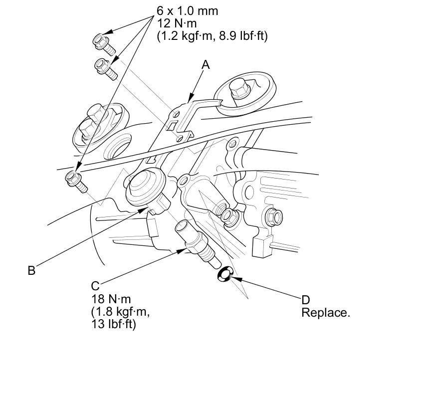 4. Install the rear differential fluid temperature sensor with a new O-ring (D) in the reverse order of removal