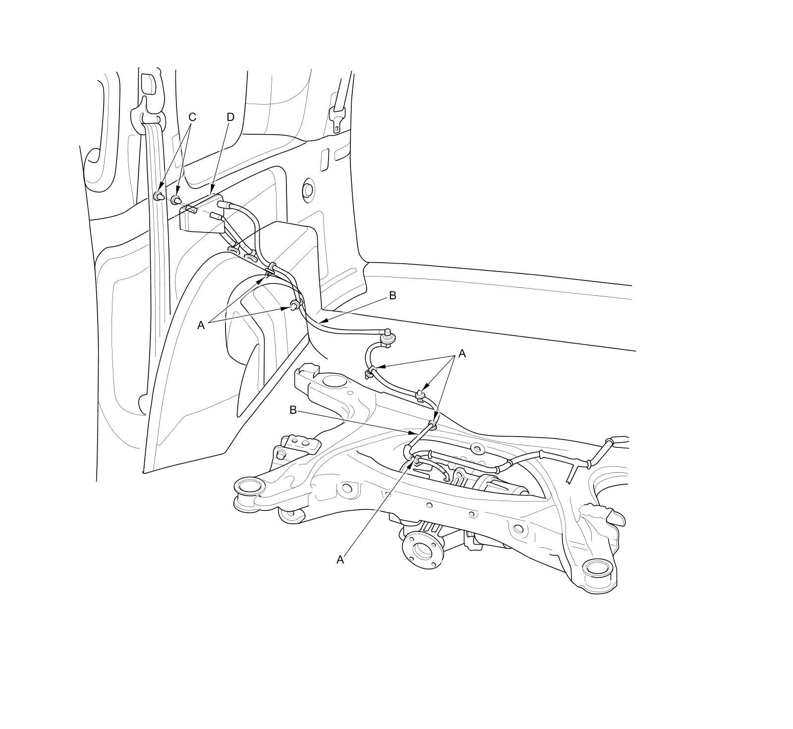 4. Remove the rear differential breather box clips (C) and the rear differential breather box (D).