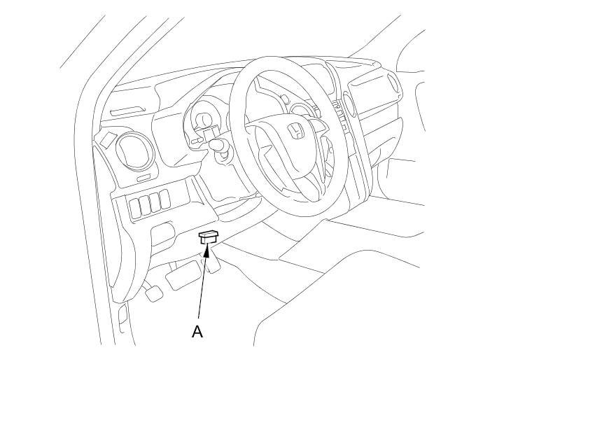 1. With the ignition switch in LOCK (0), connect the HDS to the data link connector (DLC) (A) behind the driver's dashboard lower cover.