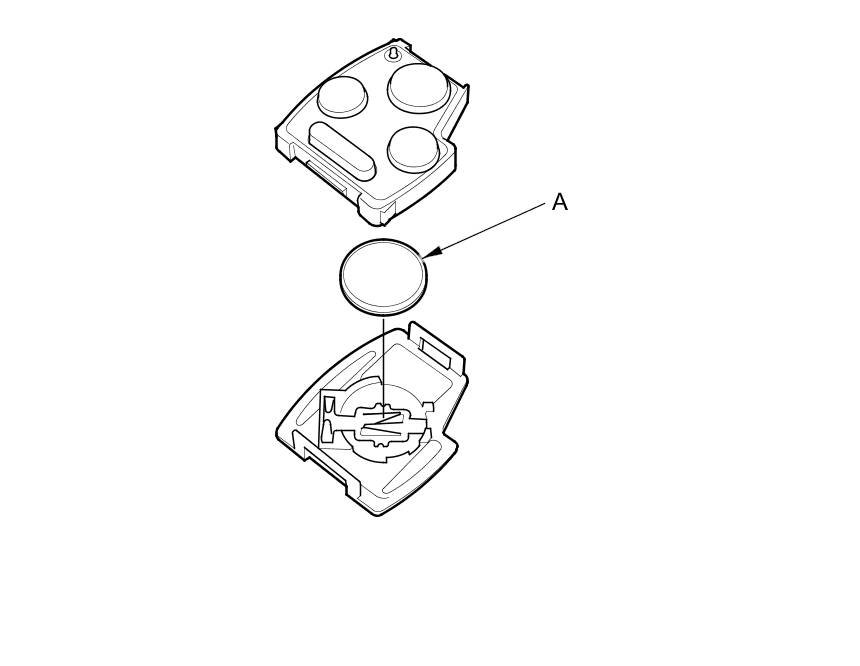 4. Replace the transmitter battery (A) with a new one, and try to lock and unlock the doors with the transmitter by pressing the lock or unlock button at least 10 times.