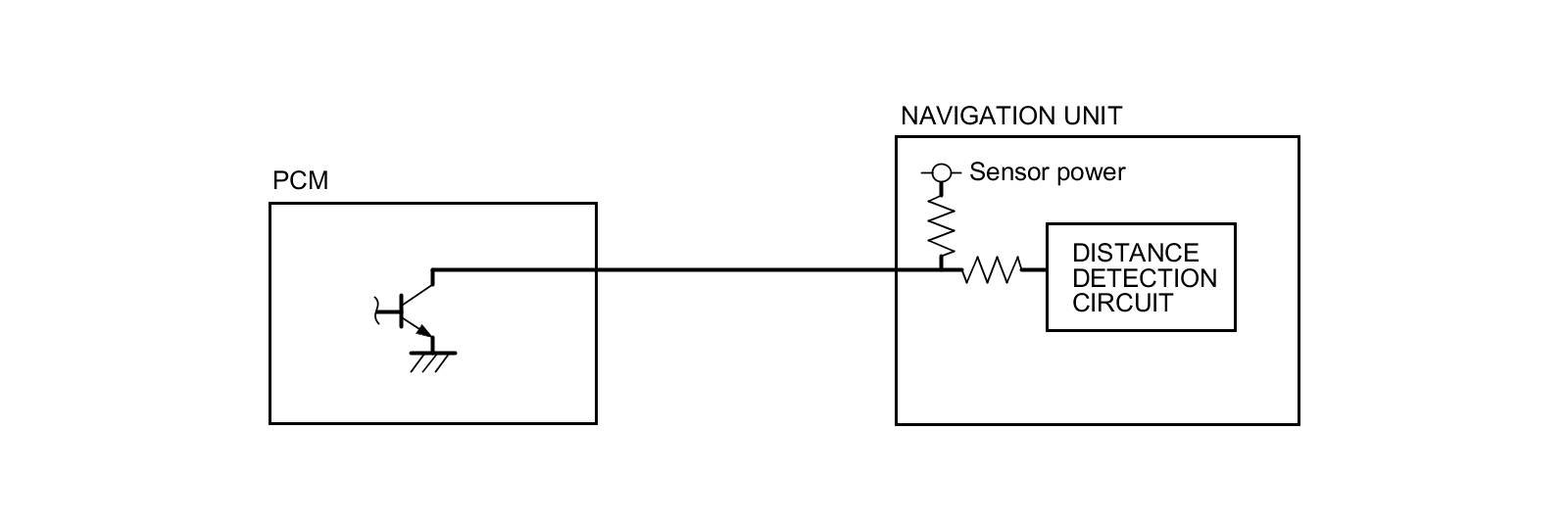 The navigation unit calculates the vehicle position (the driving direction and the current position) by receiving the directional change signals from the yaw rate sensor and the travel distance signals from the PCMs vehicle speed pulse (VSP) signal.