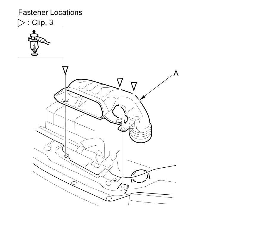 1. Remove the clips, then remove the air intake duct (A).