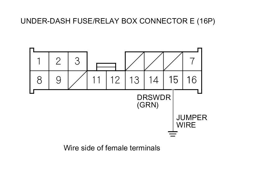 12. Connect under-dash fuse/relay box connector E (16P) terminal No. 15 and body ground with a jumper wire.