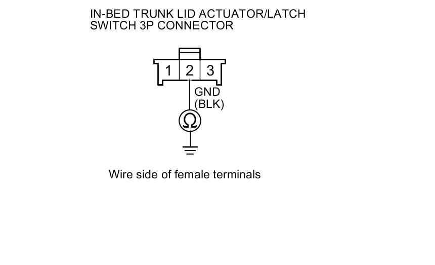 11. Check for continuity between in-bed trunk lid actuator/latch switch 3P connector terminal No. 2 and body ground.
