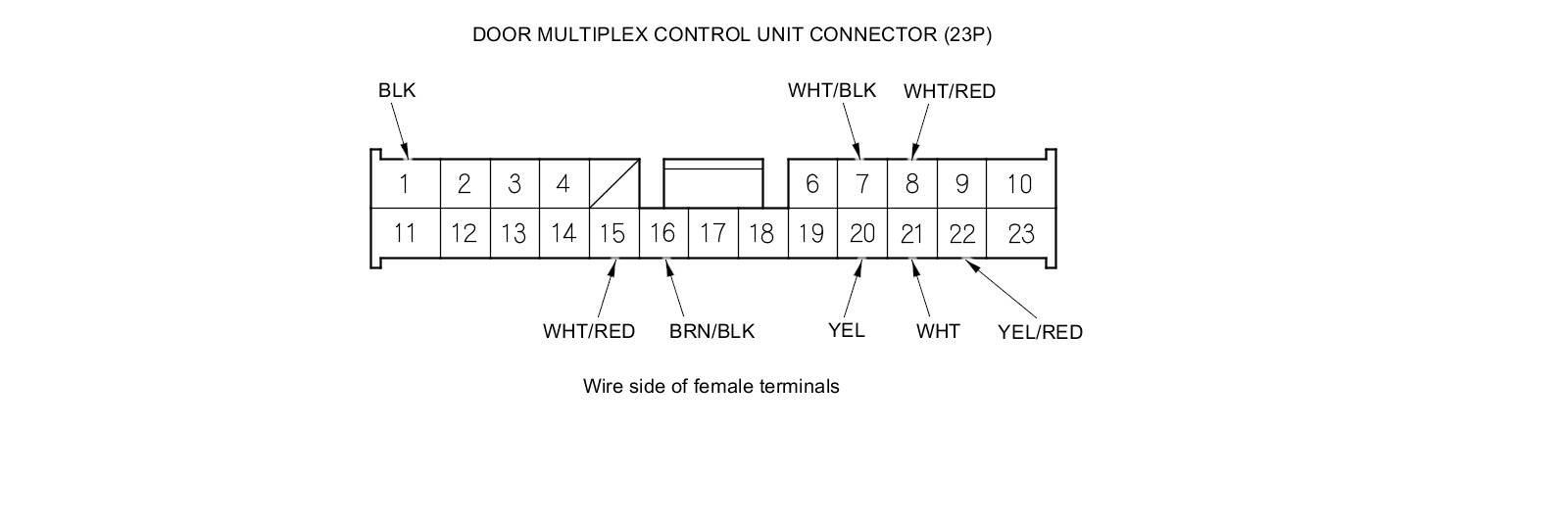 18. Reconnect the connector to the door multiplex control unit. Turn the ignition switch to ON (II) and do the following input tests: