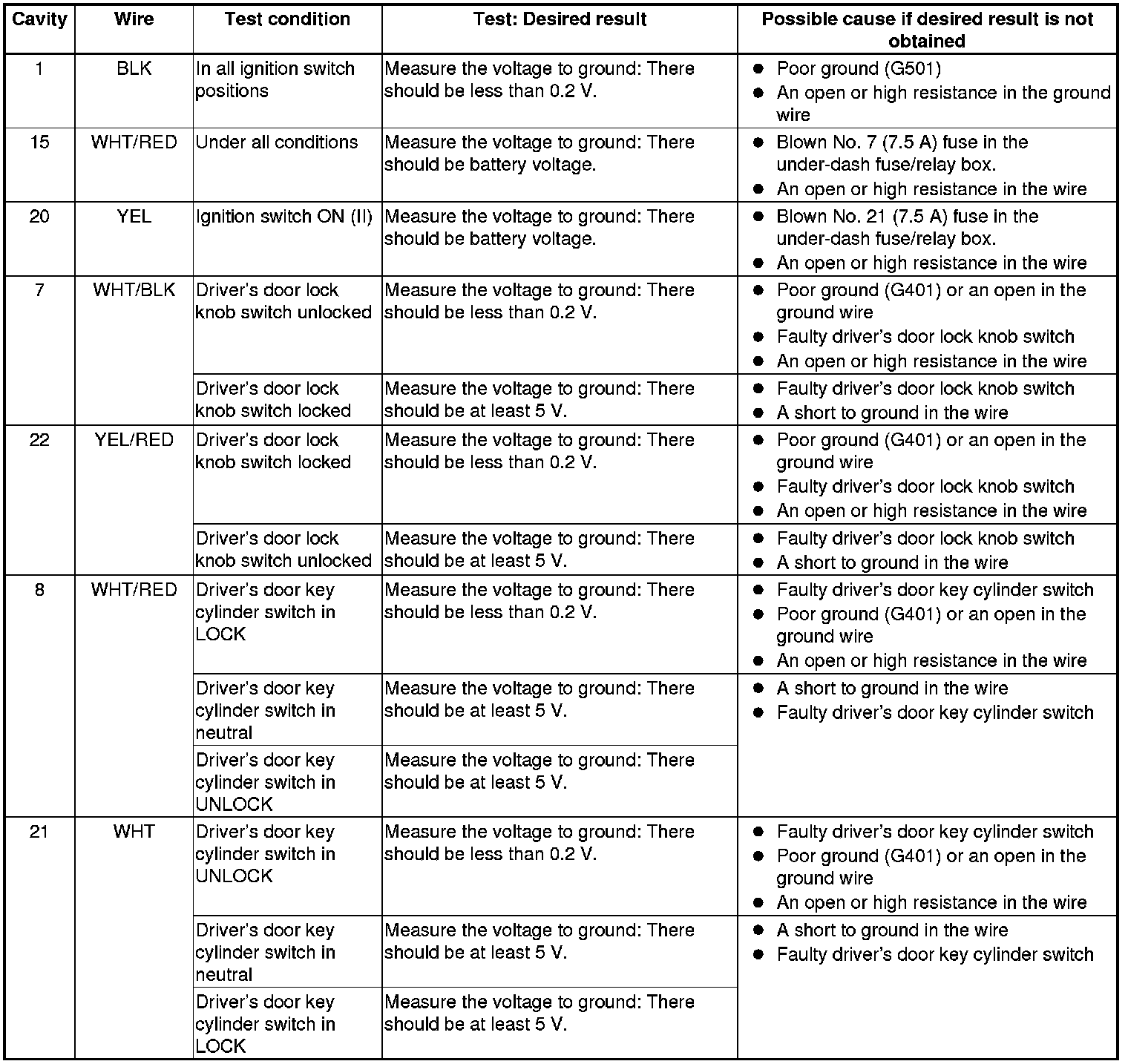 NOTE: Before troubleshooting the keyless entry/security control system, troubleshoot the multiplex integrated control system first using B-CAN System Diagnosis Test Mode A Troubleshooting - B-CAN System Diagnosis Test Mode A.