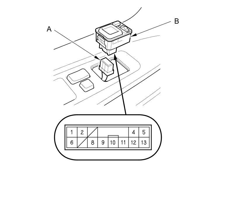 1. Disconnect the 13P connector (A) from the power mirror switch (B).