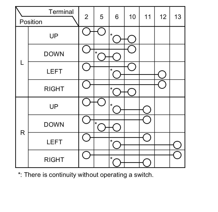 3. If the continuity is not as specified, replace the power mirror switch.