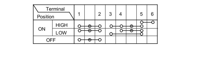 3. Check for continuity between the terminals in each switch position according to the table.